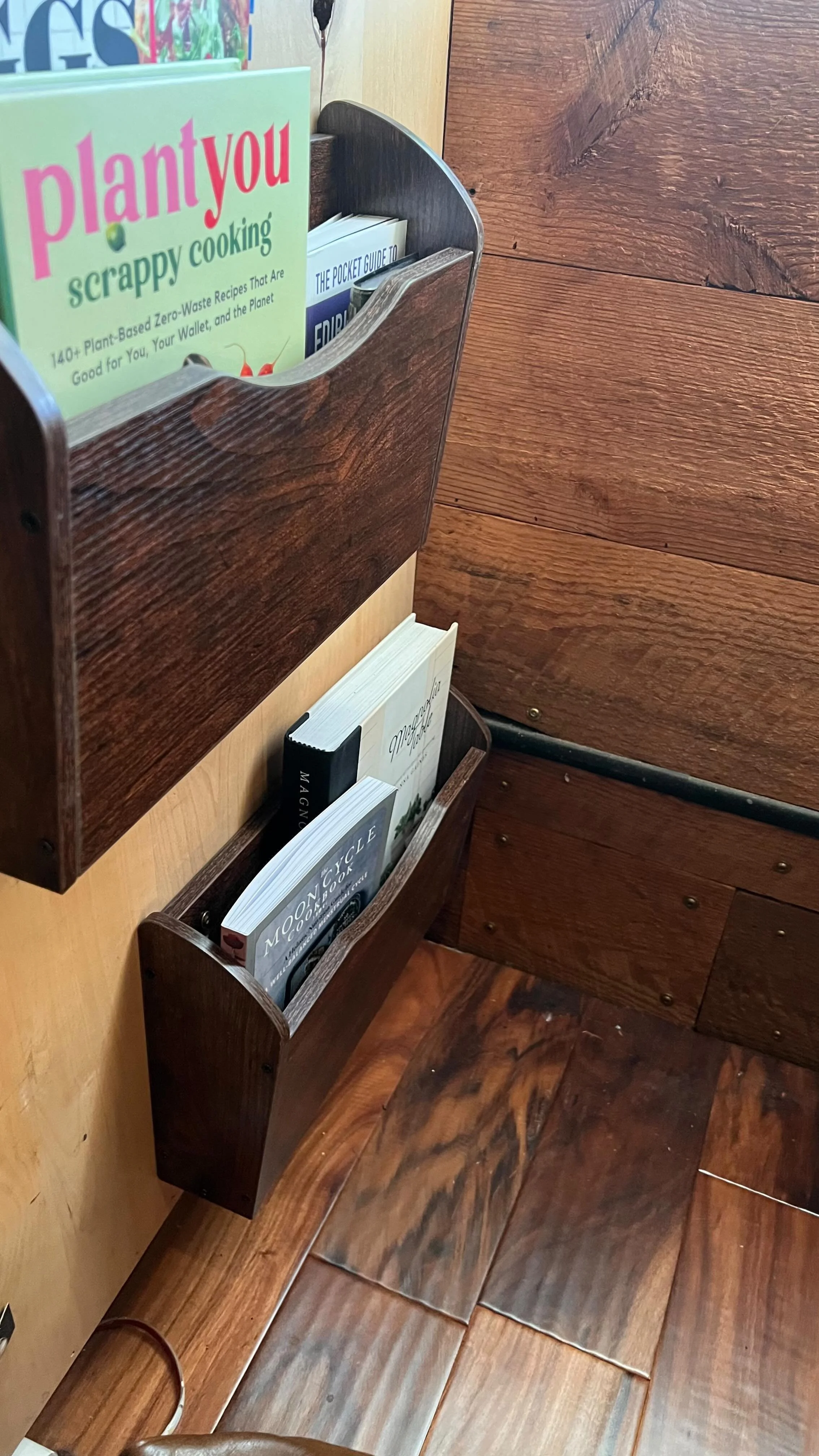 My name is MJ. I live with my husband Will and our two cats in a self-converted school bus turned tiny home on wheels (complete with a tiny wood stove)! Will and I met in the Florida Keys where we lived and worked as SCUBA diving instructors. We got to live and work in the US Virgin Islands for a short time before the 2020 pandemic lockdowns began and that is where the idea for this space started.
